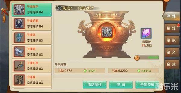 淬炼只需要用到青钢锭和铜币,都是属于游戏中最容易入手的,所以相应的需求量肯定也是很大的,青钢锭入手途径包括剧情副本、商城购买、帮会商店购买、守卫襄阳、铁掌峰、豪杰录、战备任务等,基本上每天活跃度刷满就可以入手不少青钢锭和铜币了,随着淬炼等级的整体提升,还会额外激活属性,更换装备属性也会继承,所以有青钢锭就不要吝啬,快去淬炼吧。