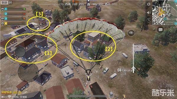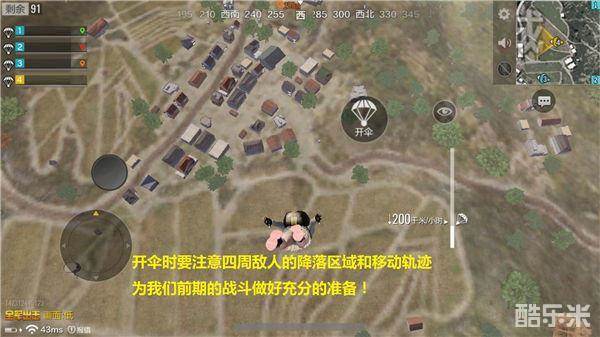 首先我们在开伞的时候,先滑动视角观察附近的敌人情况,看看敌人都是往哪个方向飞去,集中在哪个区域,而确认后我们便先在远离敌人所在的区域降落,迅速搜索装备,拥有一定的自保能力。