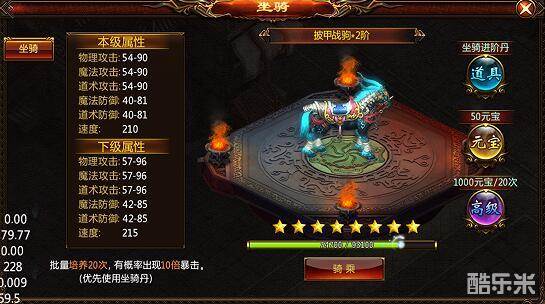 记得多喂你的坐骑吃点坐骑进阶丹,是获得更绚丽的坐骑的必备良品哦!