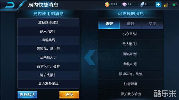 对战中没有时间去打出具体的消息,但是可以利用快捷消息来告知队友一些信息,下面略举出一些常用的快捷信息供大家参考,如图:
