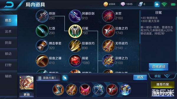 第一套出装:急速战靴、无尽战刃、影刃、破甲弓、泣血之刃、贤者的庇护