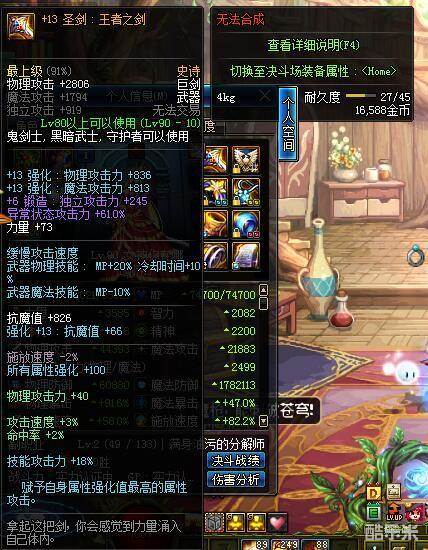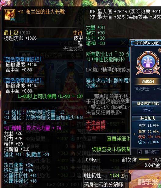 防具:三件增幅10两件增幅11;衣服裤子附魔的魂虫王+三个技能宝珠