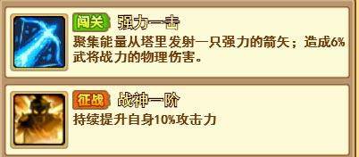 强力一击:从塔内射出一只强力的箭矢,造成6%的战力伤害。