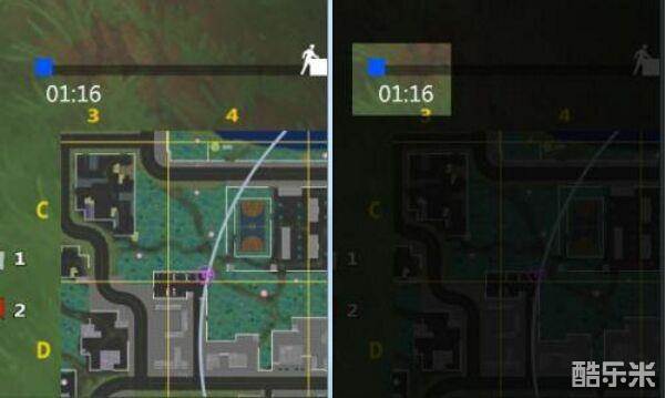 在此我们可以看到,小地图上仍然标注了毒圈与安全区的位置,那我们如何得知何时缩小安全区呢?此时注意一点!在小地图上方有一个蓝色进度条,上面有时间显示,这就是我们之前提到的跑毒时间