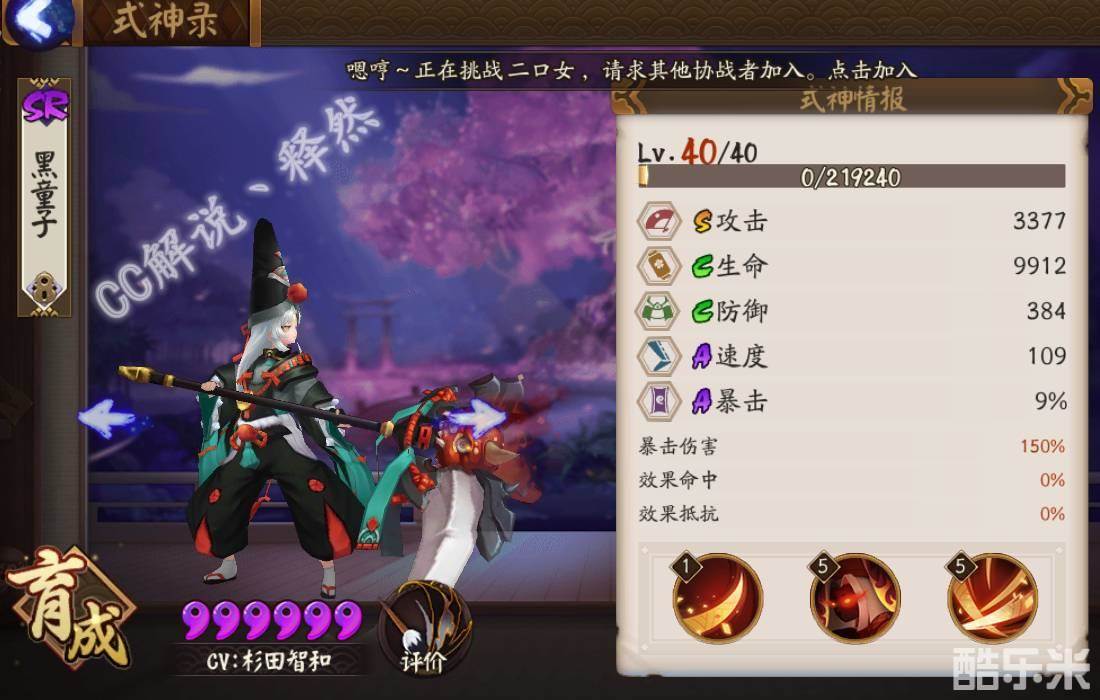 攻击S:3377-生命C:9912-防御C:384-速度A:109-暴击A:9%
