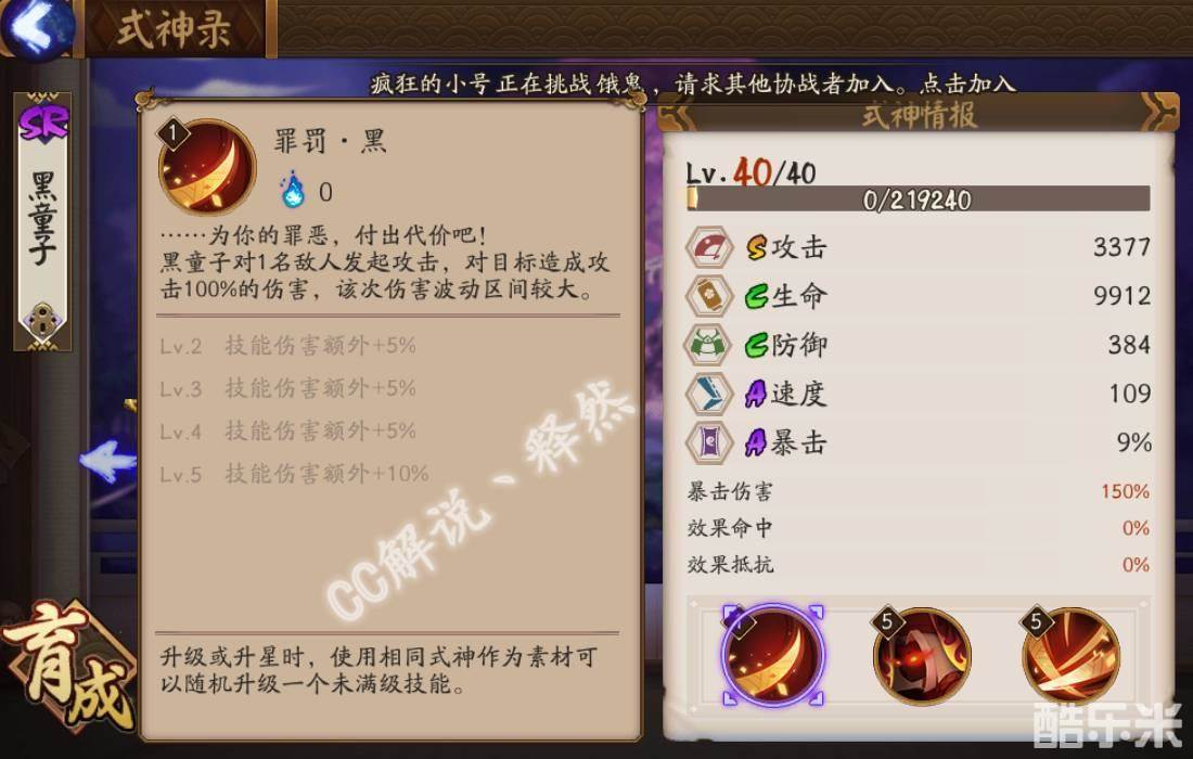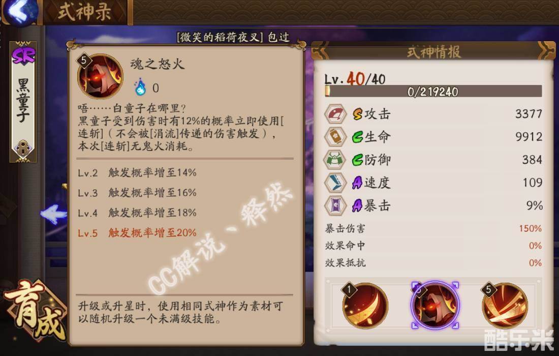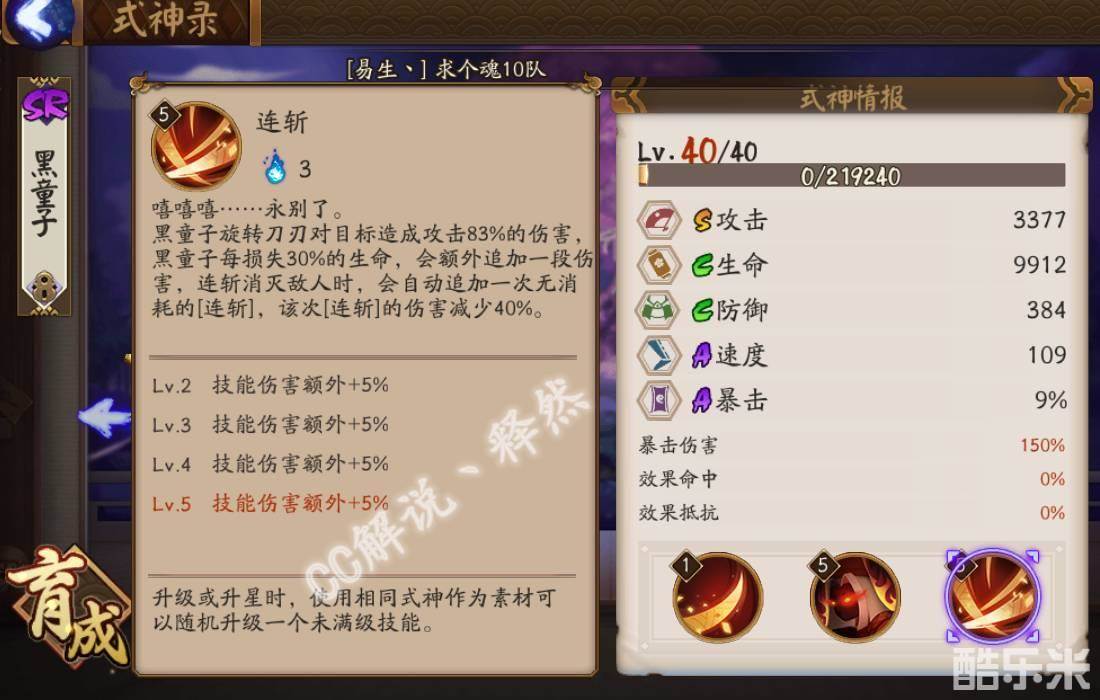 在黑童子受到伤害时有12%的几率立即使用[连斩]。且不消耗鬼火。