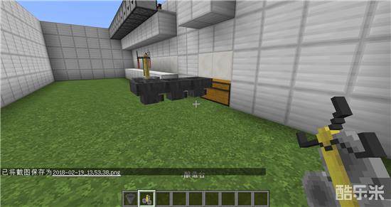在这里放置漏斗和投掷器,朝向如箭头所示,在左边的投掷器里塞满物品