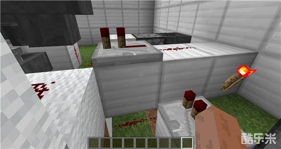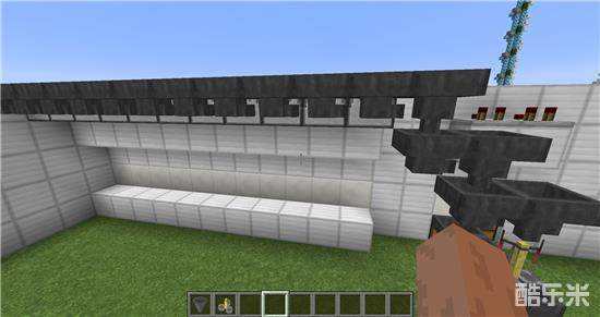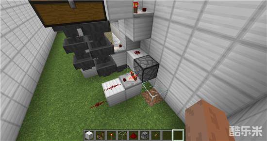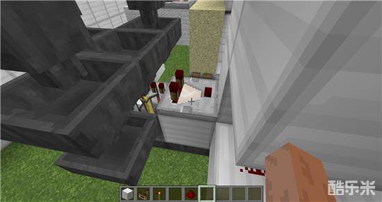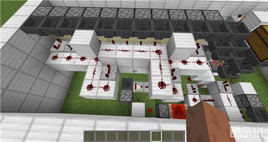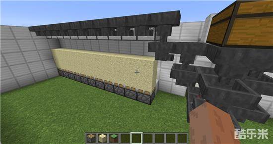 8:在拉杆后方放置一排向上的活塞,活塞上放两个重力实体方块,例如沙子