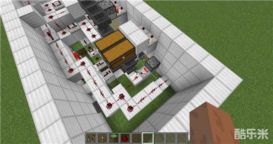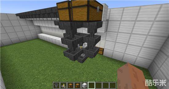7:在酿造台侧面放置6个漏斗,漏斗上方放两个陷阱箱和两个箱子
