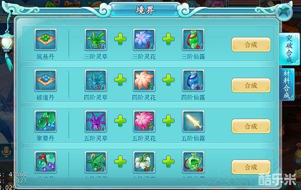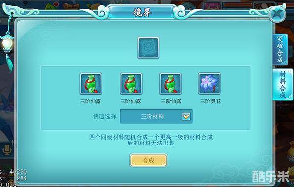 5.境界材料是可以合成的,每四个同阶材料可以合成一个高一阶的材料。