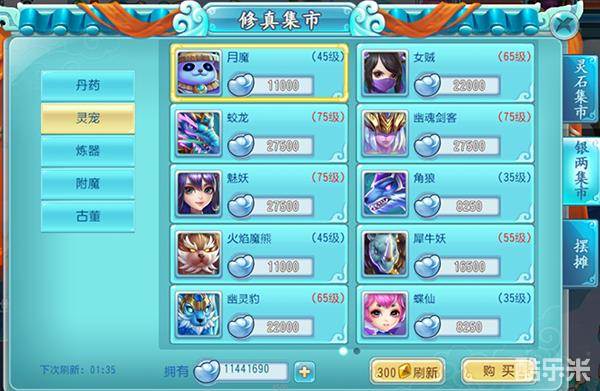 4.使用洗炼道具使灵宠的属性越高越好,仙术越多越好。