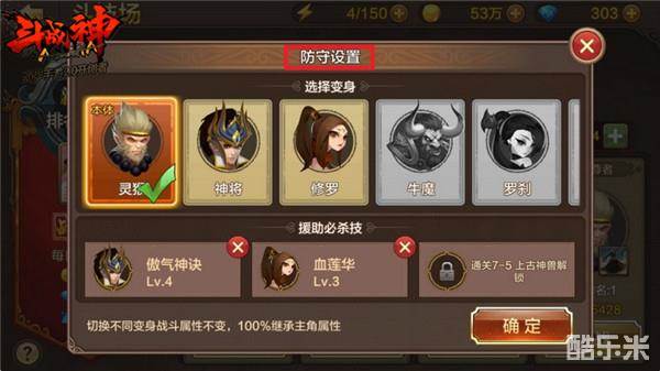 前面我们在选择好对手的时候有个选择变身的界面,现在该说说它了。我们回顾一下前面的界面,再对比一下上图的界面,就会发现两者的区别。这里的防守设置就是别人挑战我们的时候,我们选择使用那个变身或者必杀技来迎战的防守设置。因为每个变身的攻击特性和援助必杀技效果都不同,合理的搭配可以让挑战者无所适从。而且需要注意的一点是,这个防守设置与前面的挑战设置不会自动同步,尤其是当你获得新的变身或者开启援助必杀技携带上限的时候,一定要记得来更新自己的防守设置。