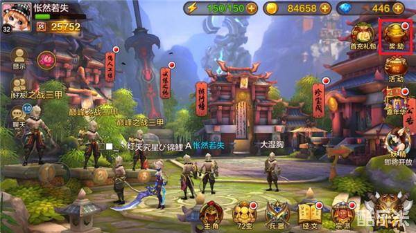 既然这两项奖励是奖励系统中的分支,那么我们当然要在奖励系统中找它们了。奖励系统的按钮在主界面的右上角,点击进入以后,首先看到的就是每日任务,大家看下图: