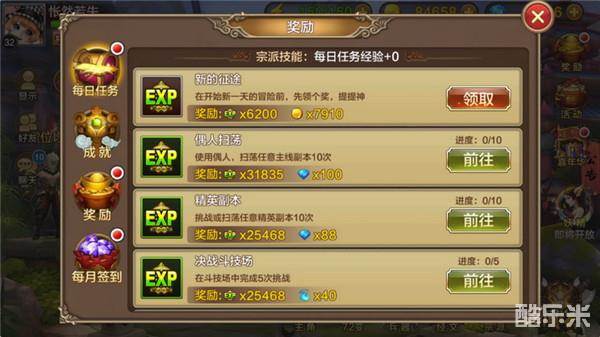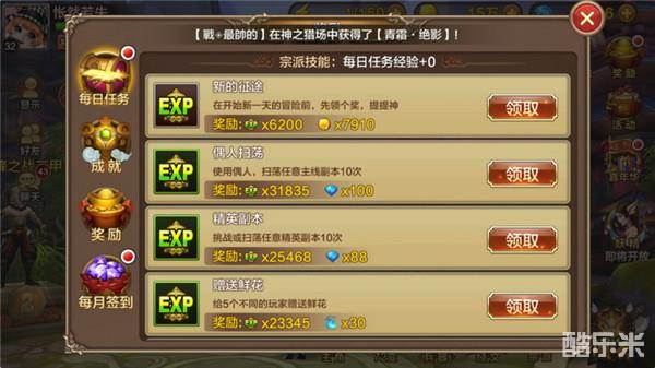 不过还要说一下的是,大家最好加入宗派,因为每日任务中有几个是宗派任务,而且宗派技能也能给每日任务增加经验,大家看下图: