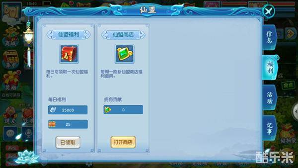 1、可通过仙盟福利里面可以不同的资源,包括贡献兑换,仙盟商店,仙盟福利,以及贡献宝箱。