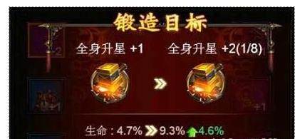 升星的铸造大师则再一次百分比的提升,全身升星等级相同的话就会开启升星铸造大师,2级就提升了将近10%的实力。