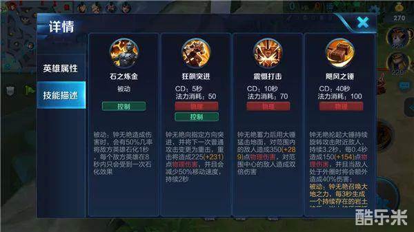 被动技能可以让钟无艳的攻击有几率石化敌人。这个几率是非常高而且稳定的,虽然一段时间内不能重复石化同一目标,但是在战斗中起到的作用是非常大的,尤其是钟无艳开启大招可以确保控制几率达到百分之百。