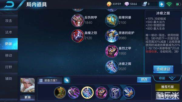 钟无艳核心装备推荐:暗影战斧、冰痕之握