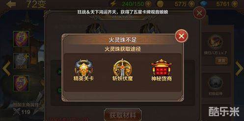 1.精英关卡。当升星所需火灵珠不足时,可以去精英关卡打boss获取火灵珠,系统会自动带你去有火灵珠的精英关卡,所以一种获取途径很方便。