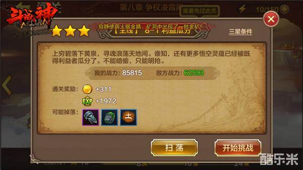 无论是挑战或者扫荡,都有可能掉落缺少的进阶材料。元神的进阶材料有两种,所以理论上关卡中会产出这两样材料。但是在实际游戏中,如果我们现在已经拥有了足够的土流光,那么在挑战或者扫荡副本的时候,土流光将不再掉落,只会出现土玄冥,避免我们在这上面浪费无谓的时间与精力。