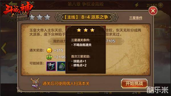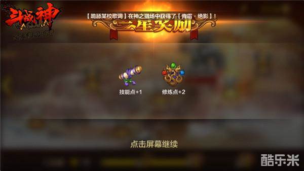 通关之后系统就会给我们发放奖励,在关卡中可以直接获得首胜的金币与经验奖励,这个与三星没有关系,只要是首次通关都可以获得。如果我们三星通关,离开关卡之后系统就会提示我们已经获得三星奖励的技能点和修炼点,有了修炼点之后,我们再去修炼界面提升属性的等级即可。