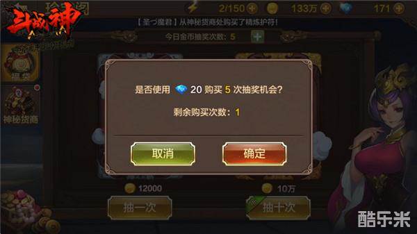 普通玩家可以花费20钻石购买5次抽奖机会,并且每天只能购买一次,如果我们没有提前使用掉每天5次的抽奖机会,那么可以选择使用钻石来购买一次抽奖机会,这样我们就能凑齐十连抽。十连抽会给我们节省一些金币,并且必定获得珍贵物品,所以还是很划算的。