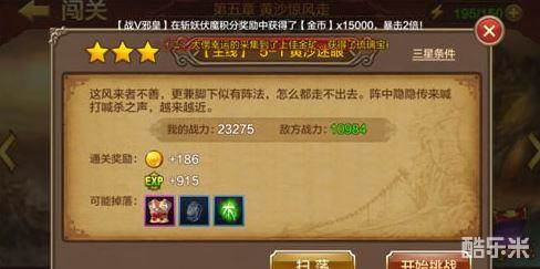 全民斗战神5-1黄沙迷眼三星通关技巧,这风来者不善,更兼脚下似有阵法,怎么都走不出去,阵中隐隐传来喊打喊杀之声,越来越近。这是什么情况貌似前方必有战场的说。待小编前去降妖除魔。