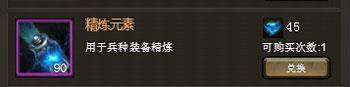 【精炼元素】可以在副本中获得,当然在【军衔商店】也可以购买的。