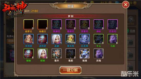 每个变身的图鉴都是独立存在的,这跟神魔谱是一样的,大家看上图罗刹的图鉴中就没有刚才我们在神将那里获得的图谱。但是在图鉴界面的左上方,碎片数量在神魔谱中是通用的,无论打开哪个变身的图鉴,碎片数量都是一样的。那么这个碎片是做什么用的呢?大家看下图:
