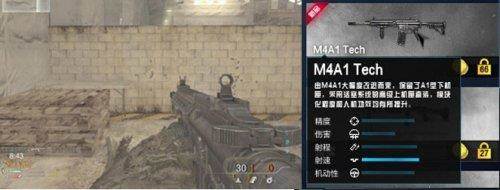 M4A1 Tech保留了A1机型下机闸,采用活塞系统的高级上机闸套装,模块化程度和人际功效均有所提升。M4A1 Tech具有极强的射击精度和出色的稳定性,而且换弹动作非常帅气,但动作略显拖泥带水,杀伤力偏弱,并且射程偏近。