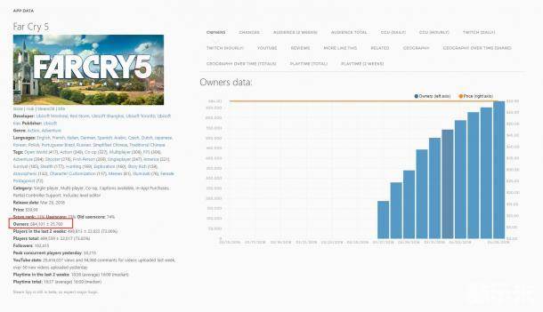 根据SteamSpy统计,《孤岛惊魂5》Steam版销量已经接近70万套。值得一提的是,SteamSpy 4月2日时的数据是50万套,这意味着短短4天又卖出了20万套。