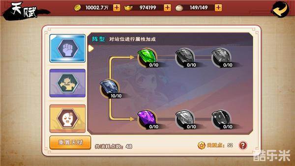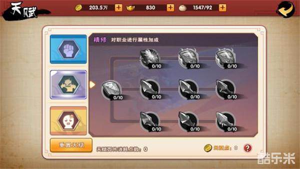 精修天赋是对阵型中的不同属性武将的具体加强,包括力量变强、技巧增大、生命强化等针对攻、技、防属性的武将具体增强的天赋。与阵型天赋不同,精修天赋点可以根据大家本身所上阵的武将的属性来进行强化,例如技能型的武将,就需要主加技能属性方面的天赋,将本页天赋点加满即可。