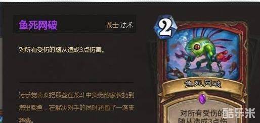 新版本鱼死网破退环境,对战士前中期的解场能力造成了影响,新版本并没有补充前期的解场牌,但是该狼人明显费用偏高了,绝对不可能替代鱼死网破的能力,但在受伤战卡组中似乎可以带上一试?