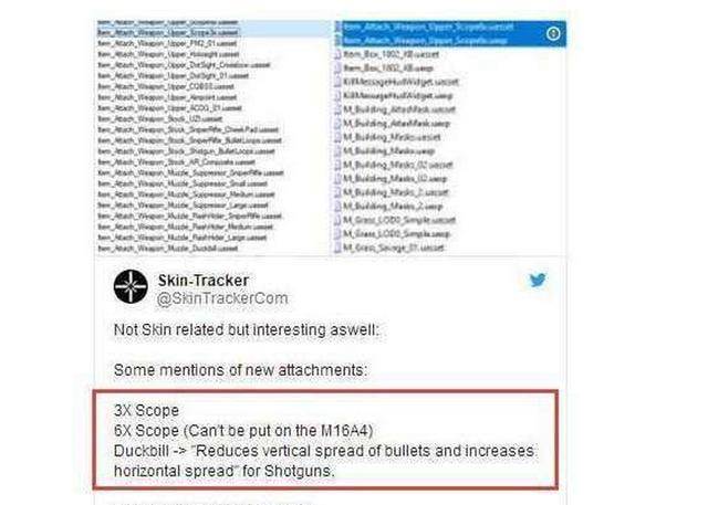 Skin-Tracker在推特下面公布,在绝地求生的最新更新中,数据显示游戏中已经出现了3倍镜和6倍镜。这个消息一下就炸开了锅,很多游戏迷都表示一定要去游戏里面找找。