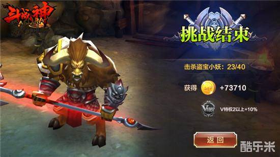 盗宝小妖是一个群怪关卡,在地图中有四个出口连续刷怪,只有当我们击杀当前出现的这些怪物之后,其他出口才会继续刷怪。盗宝小妖最多会刷出40个怪物,并且限时60秒,在60秒之内击杀所有小妖即可通关,如果没有达成这个条件,那么系统会根据你的击杀情况来发放部分奖励。盗宝小妖虽然是小怪模样,但是由于它们都身背大量金币,所以每个小妖都是千钧之躯,无法浮空或者击倒。系统推荐大家在这里使用群体伤害比较出色的修罗来进行挑战,但是小编由于没有升级修罗的天赋技能,所以相对来说,还是牛魔比较好一点,虽然不能将小妖吸到一起,但是旋风斩的持续攻击还是挺好用的。如果你的修罗天赋也没升级或者激活的话,不妨使用牛魔试试。