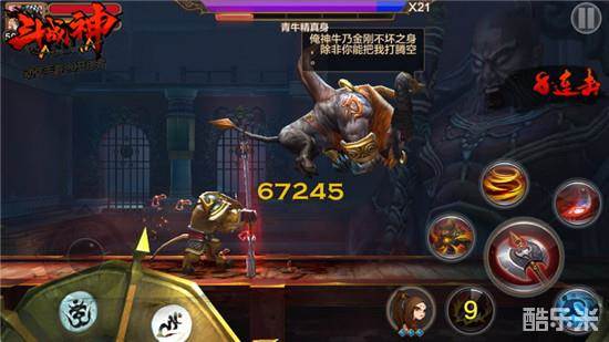 在五色神牛中没有时间限制,但是神牛会不停向前移动,当它走到地图尽头的时候就会坐升降机跑掉。而且想要对神牛造成伤害,就必须让它浮空,神牛的霸体非常好打破,但是在它浮空的时候如何造成最大输出才是这个关卡的关键问题。首先要解决的就是浮空技能,小编推荐大家在这里使用牛魔,因为大部分变身都只有一个浮空技能,牛魔也是一样。但是牛魔的好处是,让神牛浮空之后,可以连续使用旋风斩对其造成连续输出,让神牛处于浮空状态的时间更长。而且在破霸体的时候可以积攒能量,保证旋风斩的使用次数。要是有齐天大圣的变身就更好了,因为他有两个浮空技能。