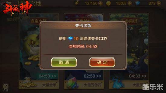 试炼之地每个关卡开启之后,每天都可以挑战3次,每两次之间的挑战间隔是5分钟,可以花费10钻石来消除该关卡的CD,直接进行下次挑战。