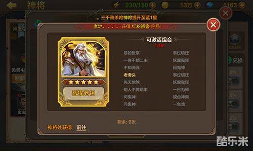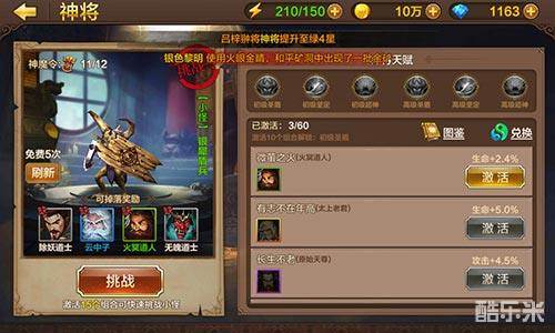 获得的不同的卡牌,是可以激活不同的组合的,激活组合可以获得不同的人物属性,每中组合需要的卡牌不同,有的只需要一张人物卡即可,有的甚至需要四、五张才可以,当然数量多的组合,获得的人物属性也会越好。当然仅仅依靠挑战小妖是不够的,我们可以通过兑换来获取高等级的卡牌,兑换卡牌就需要道玉,道玉可以通过挑战小怪获得。