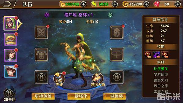 在我们完成引导后会获得三紫一蓝共四个英雄,能基本满足第一张前半段副本的战力搭配需求,当然这需要关注一下英雄的升级、进阶和装备。