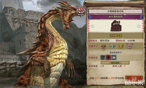 老山龙狩猎场需要等级至少达到115级的8位猎人团结合作进行狩猎,如果选择匹配的话,则要求防具总等级必须大于550级。同时,进入老山龙狩猎场前必需要完成前置分支剧情任务“迎击前奏”进行解锁,任务在风泉驿接取。在剧情任务中提供了讨伐过程中所有道具的使用练习,请各位猎人们认真的完成,提前熟悉下老山龙狩猎场中各类道具的使用。