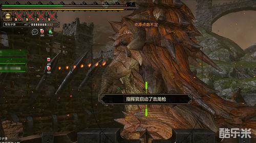 除了滑翔翼以外,还可以使用资源100G触发击龙枪对已经行进到城寨附近的老山龙进行打击。指挥官在面板上可以直接调动击龙枪而无需扳动任何扳手。但与砦蟹副本一样,击龙枪同样是有内置CD的。面对弩机和击龙枪的攻击,老山龙很快就会体力不支而倒下,猎人们终将获得胜利。