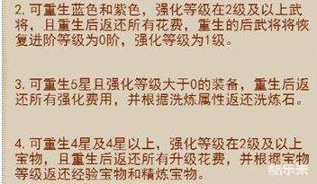其次就是重生功能了,玩家若是对高品质的武将或者装备有所不舍的话,重生就可以了,虽然需要消耗金币,却可以保留道具,并返还全部的培养资源哦。