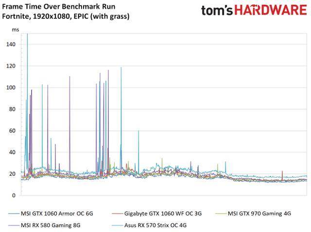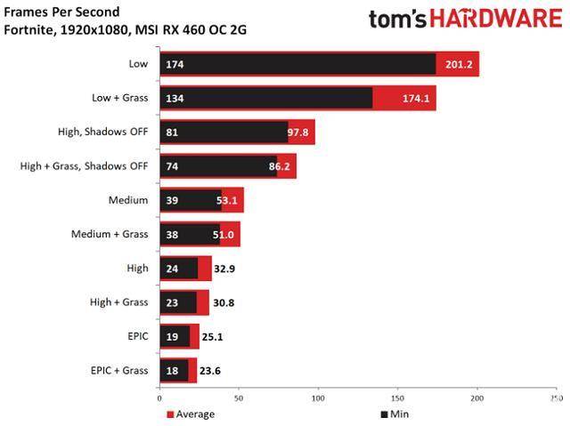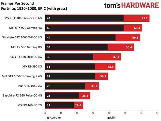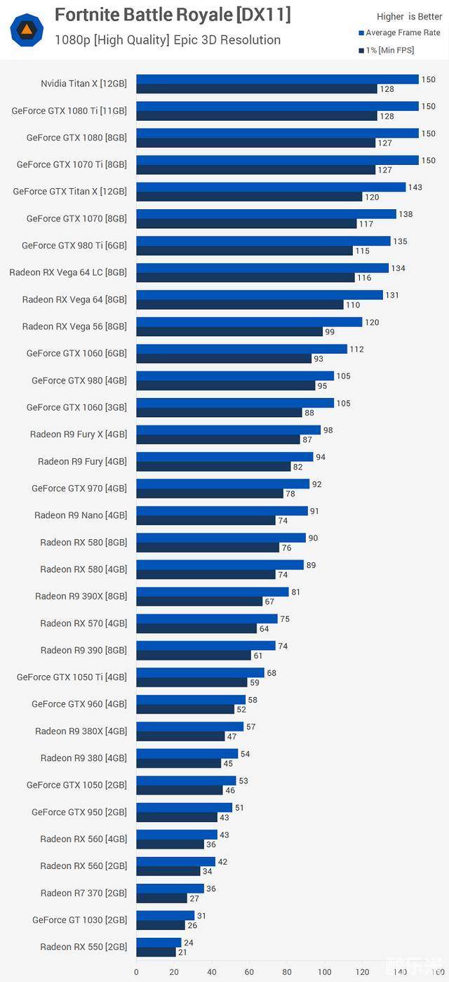不过无论是Tom`s Hardware,还是之前在1月份的时候TechSpot还使用过多达44张显卡来做测试,那时的测试说明《堡垒之夜》在不同画质之间的性能差别非常大,因为后者当时使用全高画质,而不是Epic画质,100%分辨率渲染的话,其实只要GeForce GTX 960级别的显卡就是可以达到60 FPS帧率的。