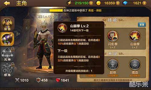 3、山崩拳:攻击四周目标,总共造成总共造成XXX%伤害并目标击飞。伤害随技能等级增加。