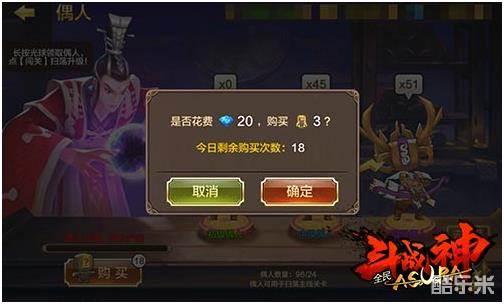 获取偶人的方法当然不止上面说的生产,还有一种方法就是购买,购买是有数量上限的。玩家提高自身VIP等级后,就可以增加偶人的购买上限,建议平民玩家升到V4,有12次的购买机会,一般的小V玩家可以升到V10,土豪玩家随心就好。当然当然没有购买的偶人,第二天可以回购,一个偶人只要2个钻石,相当划算的!