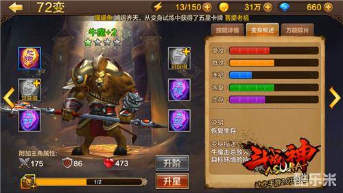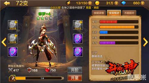 修罗本该在第二天介绍,可惜第二天内容太多没想到这里补上。修罗是所有变身里攻击范围最大的,修罗最适合在试炼之地的盗宝小妖玩法里是最好用的变身。另外在闯关模式防守关卡里修罗是非常棒的选择,小怪站位分散神将和灵猴、龙女不能首位兼顾,修罗是前期清理大范围敌人最好的选择。