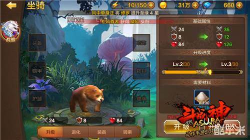 坐骑设计上真的是萌萌哒,初始坐骑是熊宝宝由于是未成年不能进行乘骑。我们该如何让熊宝宝长大呢?就是喂他吃口粮,再进阶到棕毛熊就可以了。口粮的获取比灵蕴和五色石自然难多了。