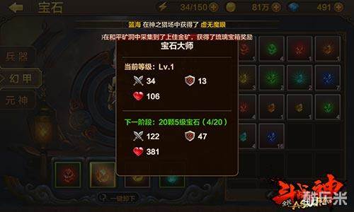 虽然橙宝石增加属性最多,但是强度上会少些,而单一的属性,增加的强度会很大,孰优孰劣就需要玩家自己去判断了。当某种等级的宝石达到一定数量就能解锁宝石大师的等级了,宝石大师可以提升我们攻击、防御和生命三属性。提升也是很大的。