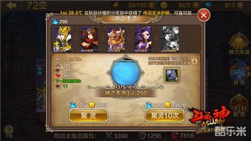 神本之源在200级以后消费的金币量会迅速递增,聚灵10次到220级接近10万金币,这个对于金币不够用的玩家还是先别点,相对于升级神本之源元神没有升满的玩家需要先升级元神,元神对战斗力的加成大于神本之源,元神满了钱没地方花了再来升级这玩意,反正灵蕴放着也跑不掉。