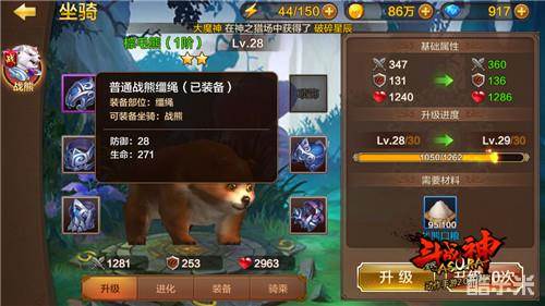 战熊装备是迅速提升战斗力的途径之一,在斩妖除魔里20层25层都能获得战熊装备,当然V7玩家还能领取一个紫色战熊头盔,一个头盔也就1000来点战斗力没有也不影响,战熊装备不是战力核心只是点缀,这里只是作为迅速提升战力介绍一下。